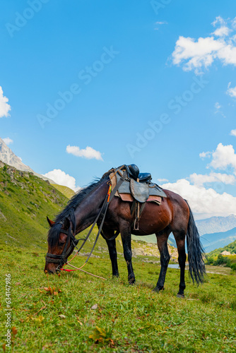 horses graze in the mountains