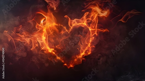 Hot abstract smoke Valentine's Day background with fire, flame, love, and passion. Tattoo fireplace hell red danger phoenix heat magic image heart