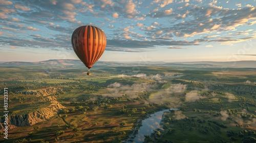 Hot air balloon floating over a scenic landscape, illustrating the joy and freedom of exploration