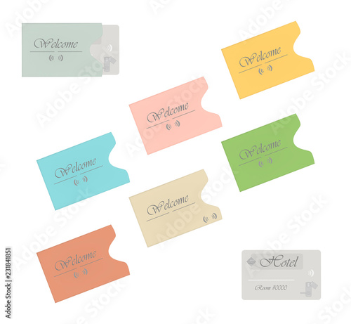 Hotel RFID key card with colored card sleeve holders isolated on white