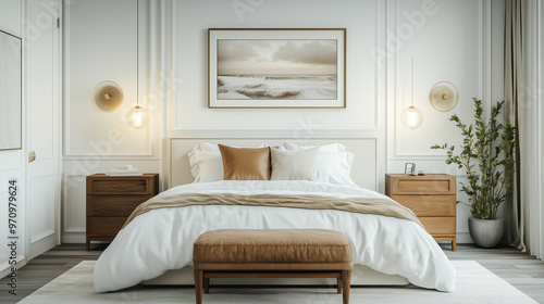 Hotel-Inspired Bedroom with White Walls Luxury Frames and Cozy Decor
