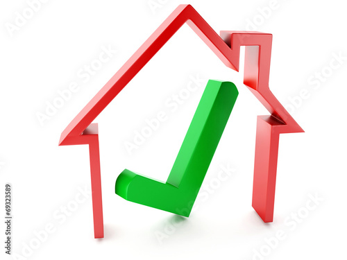house and check mark on white background