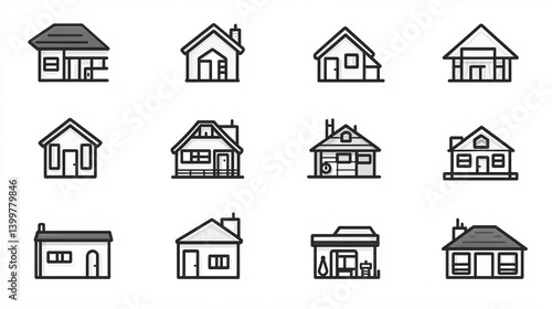 House icons vector set collection of real estate property home building architecture design illustration