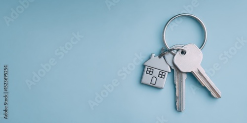 House keys on a light blue background symbolize new beginnings and home ownership opportunities during a sunny day