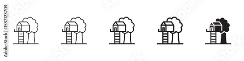 House tree icons in black outline, solid and colored style