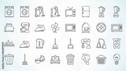 Household Cleaning Icons in Minimalist Style with Gray Color on White Background for Web Design