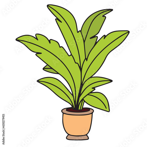 Houseplant colored outline isolated on white background. House plant hand drawn in doodle style for decoration. Vector illustration.