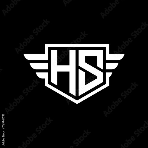 HS Logo vector image of initial shield with wing outline and simple shield