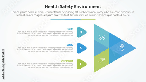 HSE infographic concept for slide presentation with creative venn arrow shape with 3 point list with flat style