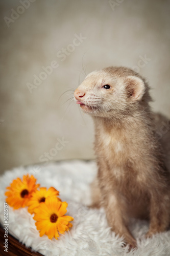 hübsches Frettchen mit Blumen