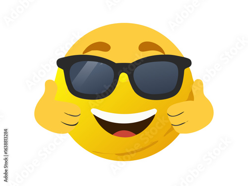 Hugs emoji with sunglasses on white background. Large size of yellow emoji smile