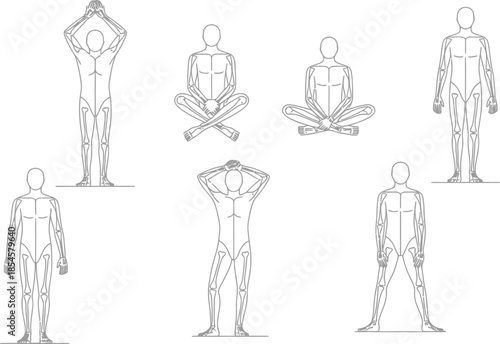 Human body anatomy illustrations in various poses architectural drawings CAD