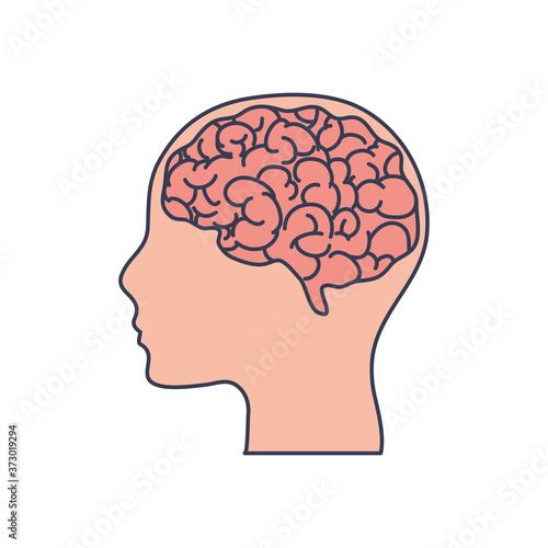 human body concept, head and brain icon, line fill style