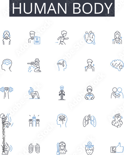 Human body line icons collection. Mental health, Fashion style, Economic growth, Environmental sustainability, Political power, Global economy, Social media vector and linear illustration. Family