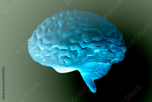 Human brain anatomical model on black background