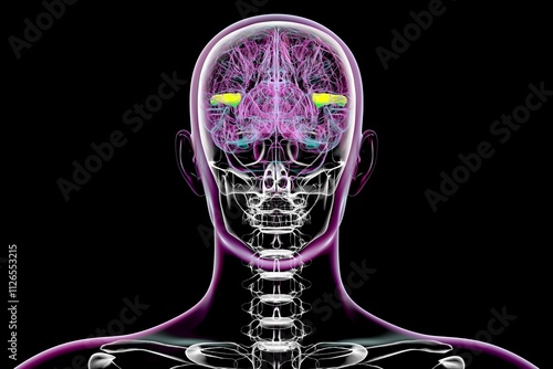 Human brain with highlighted transverse temporal gyri, 3D illustration