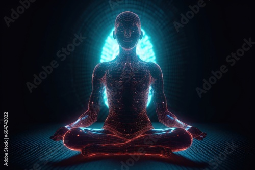 Human chakra, buddhism, meditating. Refers to energy points in your body. Chakra therapies, yoga, healing. Disks, of spinning energy to certain nerve bundles and major organs. Generative AI
