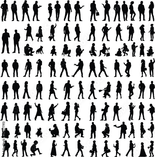Human Figure Silhouette Collection Featuring Twenty-Five Distinct Black Icons in a 5x5 Grid—Each Figure Depicts a Unique Everyday Pose Including Standing, Walking, Pointing, Holding, Gesturing,