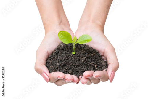 Human hands and young plant