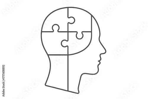 Human head profile with puzzle pieces. Concept for psychology, mental health, dementia, autism. Metaphor for problem solving, business solutions, thinking and therapy process.