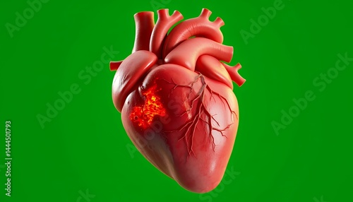Human Heart Detailed Anatomy on Green Screen for Medical Education and VFX Element Isolated Rendering
