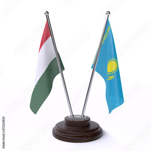 Hungary and Kazakhstan, two table flags isolated on white background. 3d image