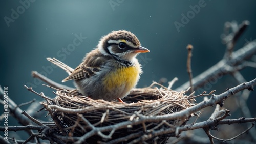 hungry young bird in its nest eagerly anticipating food from its mother.