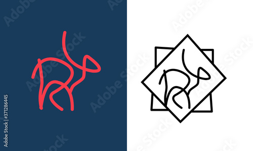 Hunting Line art Logo Template. Deer Head and Horns Silhouette Isolated On White Background. Vector object for Labels, Badges, Logos and other Design. Deer Logo, Hunter Logo, Deer Hunting, Retro 7