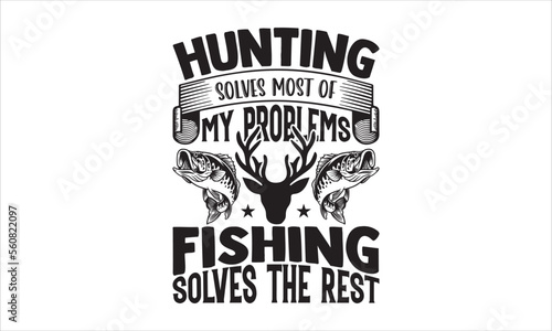 Hunting solves most of my problems fishing solves the rest - Hunting SVG Design, Hand drawn lettering phrase isolated on white background, Illustration for prints on t-shirts, bags, posters, cards, mu