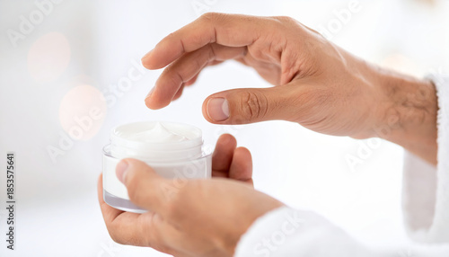 Hydration moisture skin winter dry care wellness routine self care beauty health protection cream jar hand applying moisturizer to skin winter routine for dry skin promoting wellness and protection