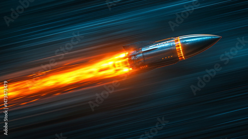 Hypersonic missile in high-speed flight, captured with dynamic motion blur. Symbolizes advanced military technology, speed, power, and precision in a sleek, futuristic defense visualization.