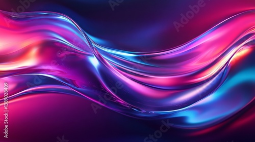 Hypnotic 3D liquid glass wave with neon iridescent gradient flowing across a dark background in continuous motion