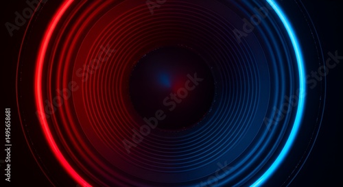 Hypnotic Spiral: Red and Blue Concentric Rings, Abstract Light Tunnel