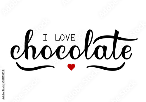 I love chocolate lettering and red heart. Vector illustration with text.