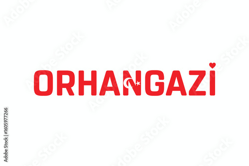 I Love ORHANGAZI, Typographic Design of I Love ORHANGAZI on a white background, Flag Typography of ORHANGAZI with heart, Vector design of I Love Turkey