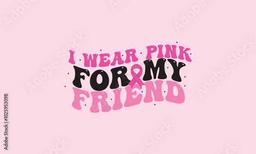 I Wear Pink For My Friend Cancer Awareness Retro T-Shirt Design