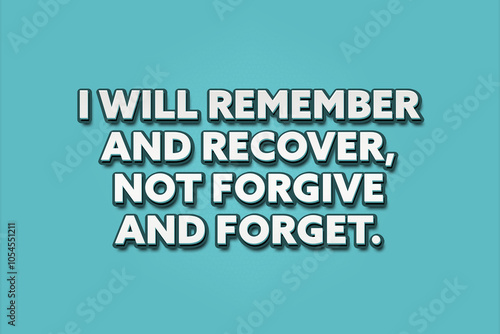 I will remember and recover, not forgive and forget. A Illustration with white text isolated on light green background.