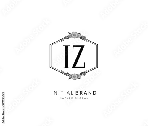 I Z IZ Beauty vector initial logo, handwriting logo of initial signature, wedding, fashion, jewerly, boutique, floral and botanical with creative template for any company or business.