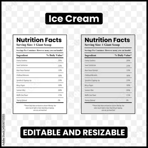 Ice cream nutrition facts Ice cream label design Dessert nutrition facts Mock nutrition label Sweet treat label Ice cream infographic Funny ice cream label Frozen dessert nutrition facts