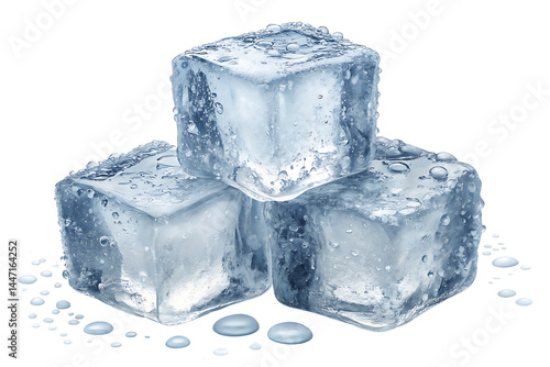 ice cubes forming a layer of frosty chunks isolated on white background PNG