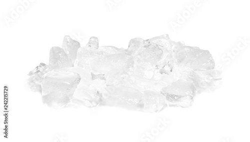 Ice cubes on white background. Frozen liquid