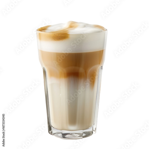 Iced Latte Macchiato with Milk Foam on Transparent Background