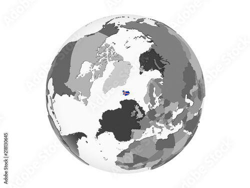 Iceland with flag on globe isolated