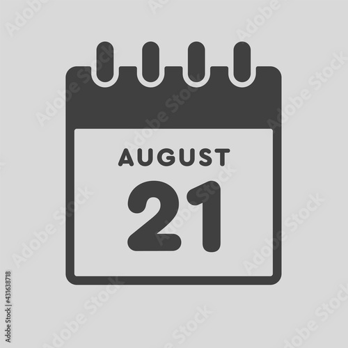 Icon day date 21 August, template calendar page