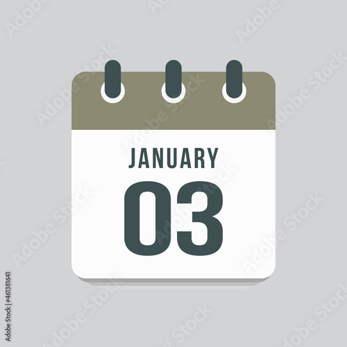 Icon day date 3 January, template calendar page