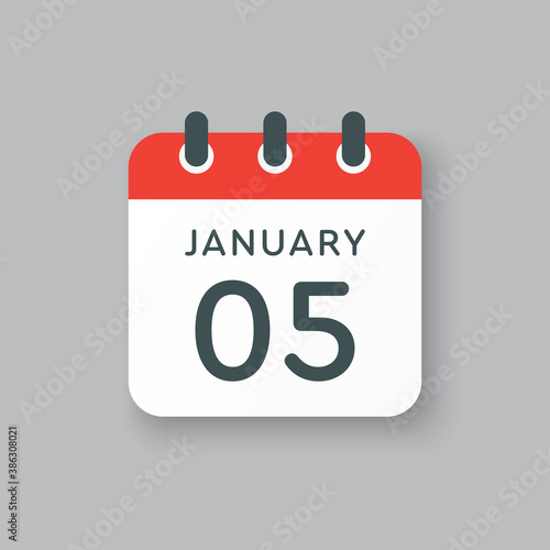 Icon day date 5 January, template calendar page