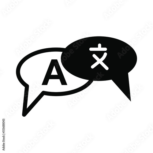 Icon for translator app. Chat bubbles with language translation icons in different styles. Online multi language translator. Tran Isolated on a blank background which can be edited and changed colors.