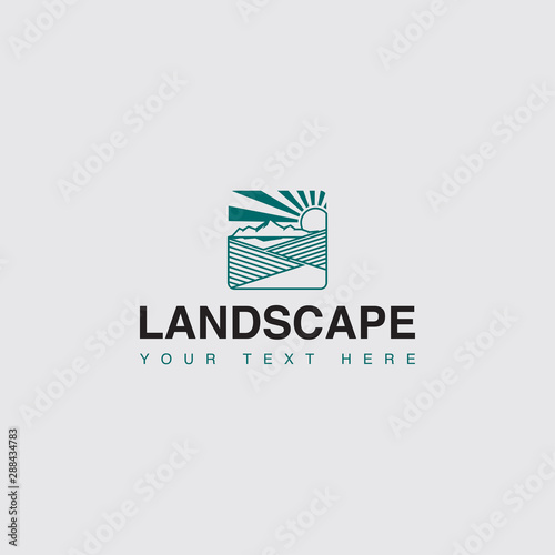 icon logo landscape of mountain,sun and filed concept