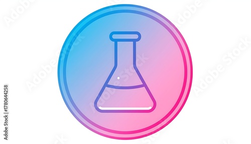 Icon of a lab flask with liquid inside, set in a gradient circle. Minimalist design with outline and fill