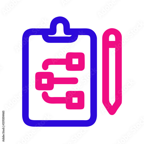 Icon of a project plan with flowchart elements and pencil